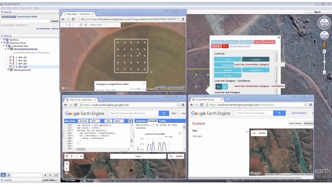 Collect Earth is a free, open-source desktop tool for monitoring land with satellite images. It enables users to view, interpret, and record information using imagery from Google Earth Pro and Google Earth Engine. The solution is fully integrated with Open Foris Collect, which is used to design surveys with flexible structures and tailored objectives.